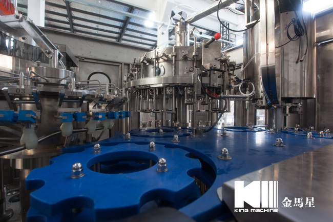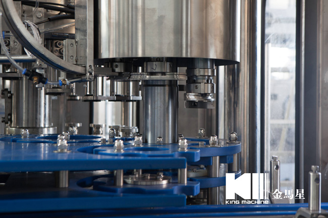 本設備集合了消毒、沖洗、灌裝和壓蓋,合四為一,能夠實現全自動桶裝水旋蓋。沖瓶機使用多種沖品液和消毒液,以保證獲得沖瓶和殺菌效果。消毒液可以循環使用,節省消耗。